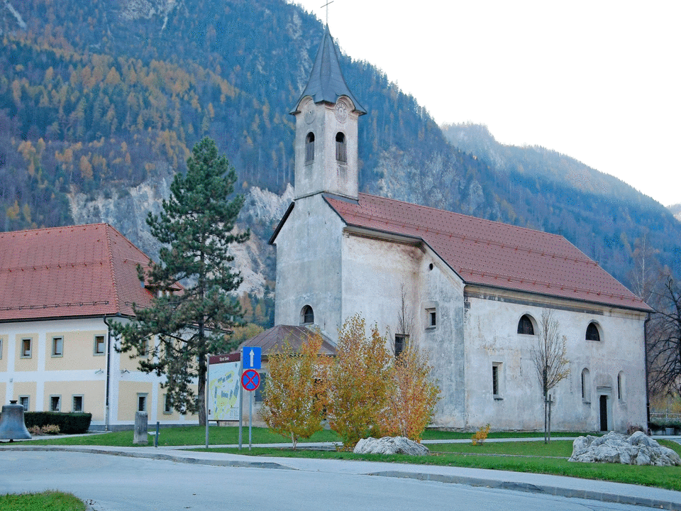 Cerkev je dala postaviti družina Bucelleni, posvetil pa jo je ljubljanski škof Tomaž Hren leta 1606. Znana je po glavnem oltarju iz črnega marmorja. Do zaprtja cerkve v petdesetih letih 20. stoletja so jo krasile umetnine beneškega slikarja Nicola Grassija (1682-1748), ki je naslikal tri oltarne podobe: Marijino vnebovzetje, Marijo rožnega venca s sv. Dominikom in Frančiškom Asiškim ter Sv. Antona Puščavnika z antičnim mučencem.